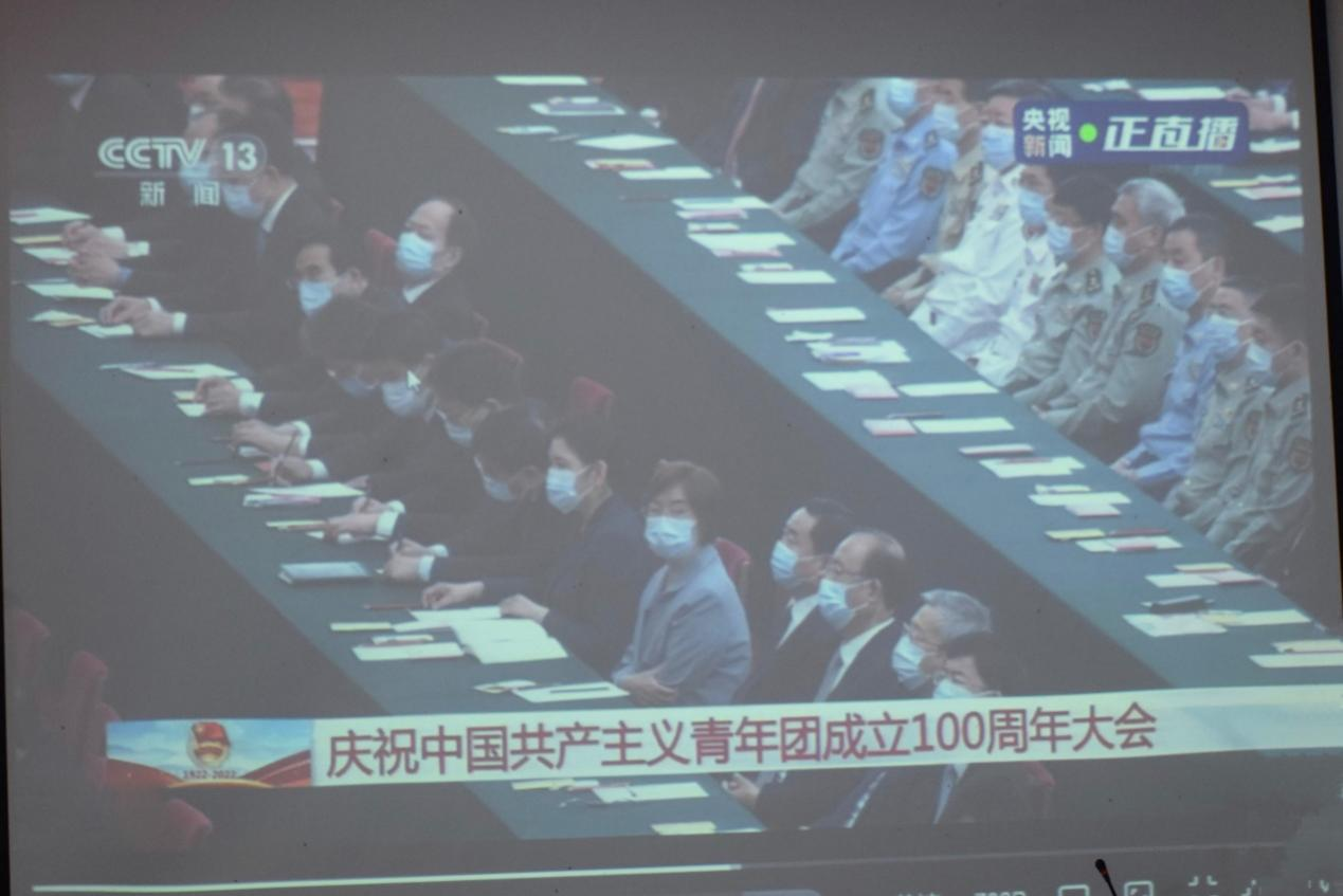 2022年5月10日,必赢766net手机版第十一届团委学生会于1107集中观看庆祝中国共产主义青年团成立100周年大会,学院团委书记陈辉、本科生第一支部书记张毓芯、第十一届团委学生会全体成员以及各班班长团支书参与此次观看。