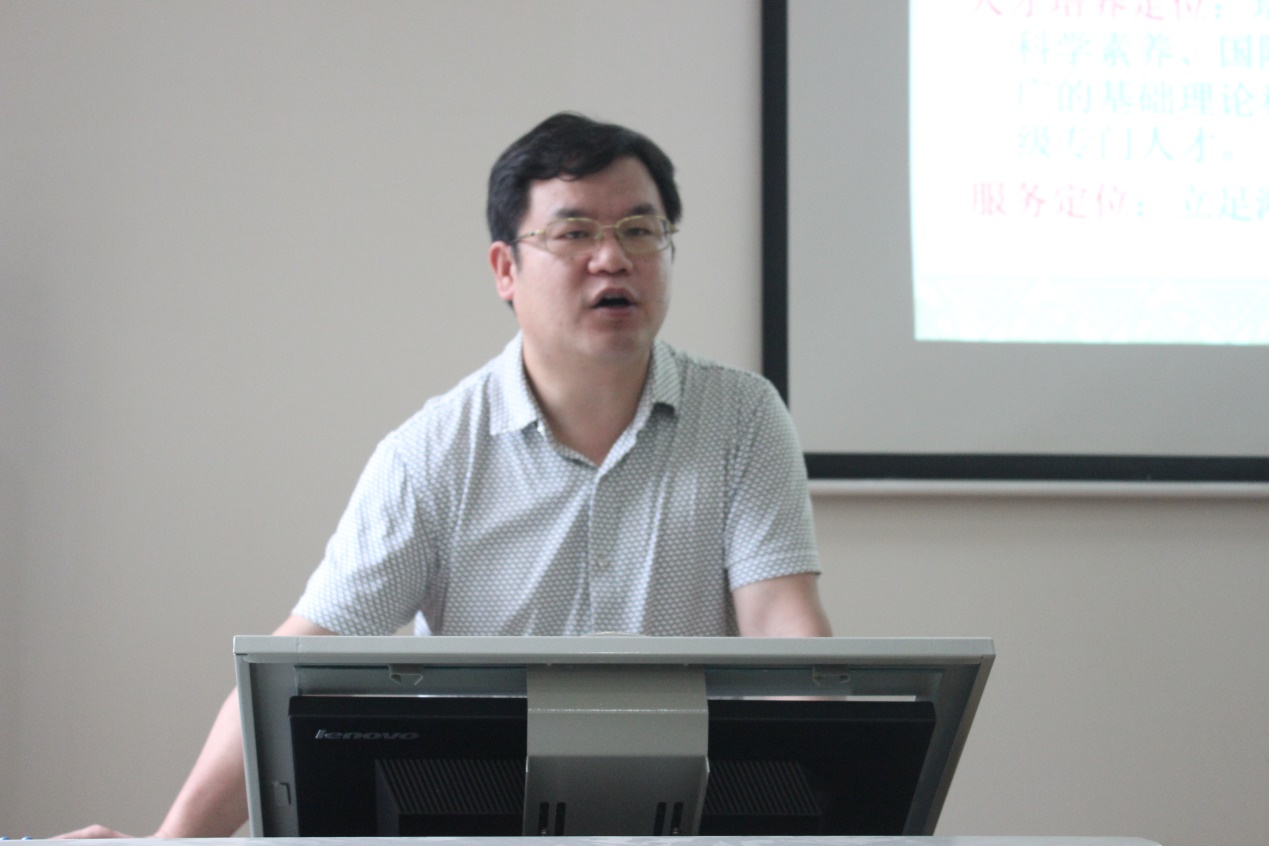 而后,院长方东辉就我院本科教学审核评估工作相关情况做了汇报,主要从学院概况、审核评估推进情况、自评情况以及现阶段存在的问题和不足四个方面展开。其中,他讲到,我院把审核评估分为营造氛围,确立质量标准、规范教学环节,深入自省、扎实建设,接受评估,整改提高四个阶段。接着,从我院的办学定位与目标、师资队伍建设、教学资源、培养过程、学生发展、质量保障六个方面阐述了我院自评情况。最后,从思想观念、师资队伍、教学资源、培养过程、招生就业、材料准备六个方面提出存在的问题。