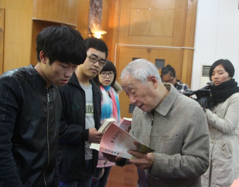 随后李泽南老师讲述自己作为党员的经历,还兴致勃勃的唱起当年的团歌。李泽南老师慷概激昂的讲话和崇高的精神感染了在场的每一位同学,赢得了阵阵掌声。李老师还将自己签字盖章的《重走教师路》一书依次亲手赠送到82名同学手中。