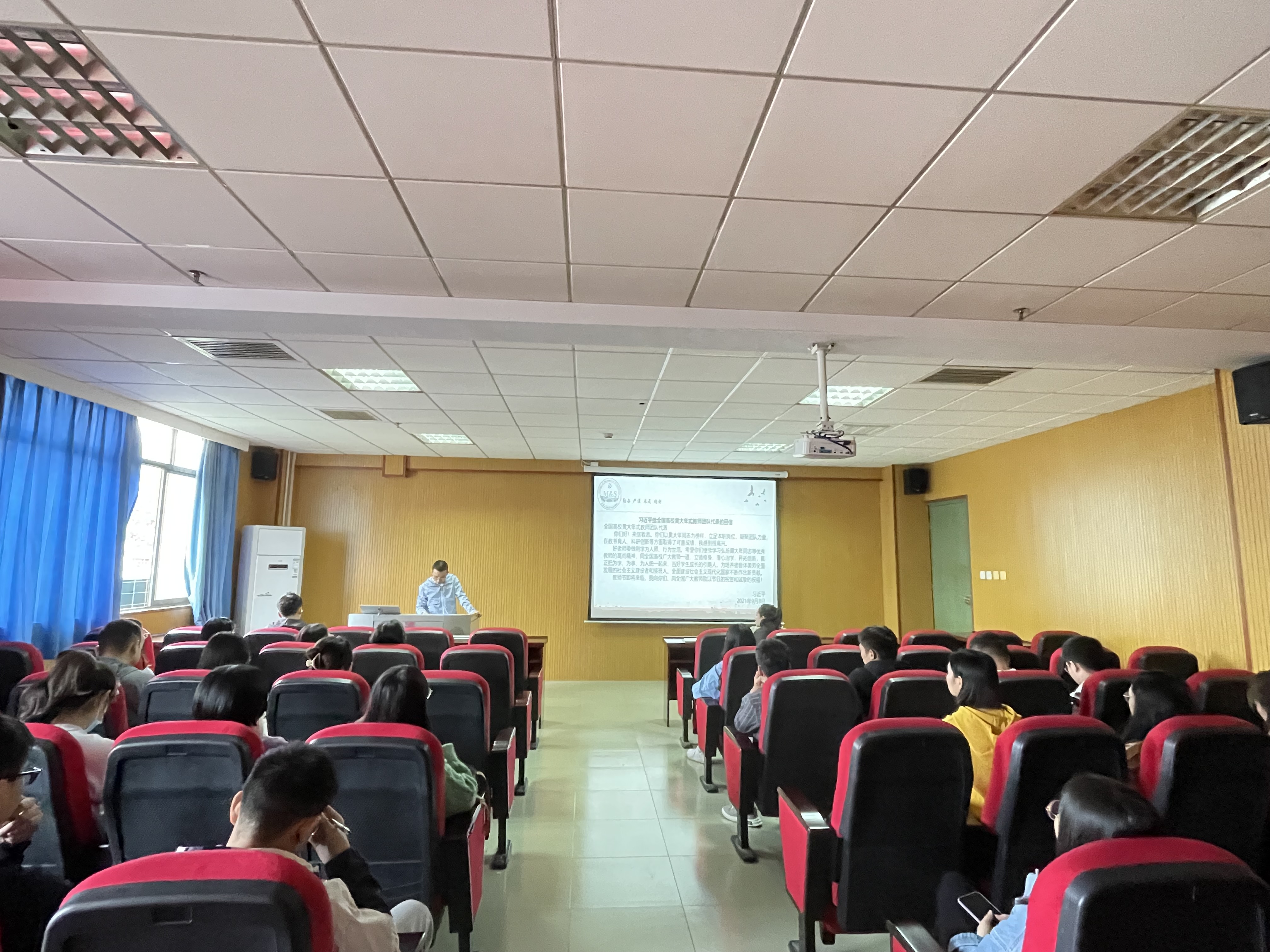 首先,研究生党支部书记郭兵老师为全体党员介绍了黄大年同志的人物生平,带领党员同志解读了重要回信精神,并呼吁全体党员同志应以黄大年同志为榜样,提高自身的政治素养,做一个有理想信念、心中装着国家、致力于为祖国谋复兴的新青年。