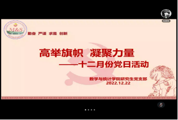 (通讯员 张美杨)为了深入学习宣传贯彻党的二十大精神,党的二十大是一次高举旗帜、凝聚力量、团结奋进的大会,在党和国家发展进程中具有极其重大的历史意义。,2022年12月22日,必赢766net手机版研究生党支部在腾讯会议开展了主题为“高举旗帜,凝聚力量”十二月份党日活动,活动由张美杨同志主持。