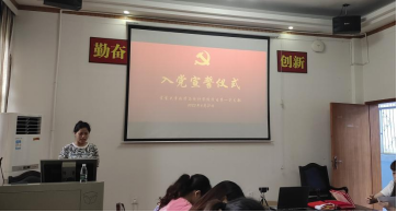 宣誓完毕后,谢静同志作为新党员代表发言,她表示,“今后一定会加强理论政治学习,坚定政治信仰,不断深入学习、深刻领会党的创新理论,在新时代的大潮中坚定理想信念,在中华民族伟大复兴的伟大事业中能作为、善作为。同时努力学习业务知识,增强为人民服务本领,立足本职岗位,发挥先锋模范作用”。