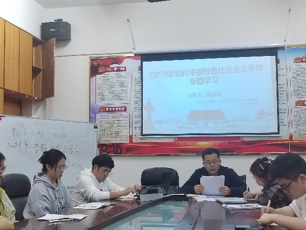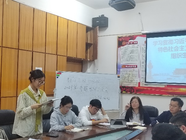 会议第一项,首先由欧发勋同志领学“习近平新时代中国特色社会主义思想”。他表示,“实事求是是马克思主义的精髓,是马克思主义的灵魂,是马克思主义的根本观点、是共产党员认识世界、改造世界的根本要求。作为青年党员我们要始终坚持实事求是的崇高理念,坚持一切从实际出发研究问题并解决问题,坚持运用好包括‘’六个必须坚持’在内的立场观点方法“。随后,与会党员以党小组为单位进行讨论,并派代表发表心得体会。第二党小组代表胡玉权同志提到,“当代青年学习领会习近平新时代中国特色社会主义思想要知其然,更要知其所以然,要坚定历史自信,增强历史主动,尊重和遵循历史规律和历史大势,更加准确地判断未来世界和中国的发展方向”。