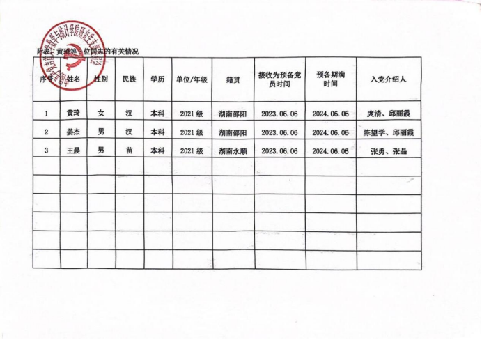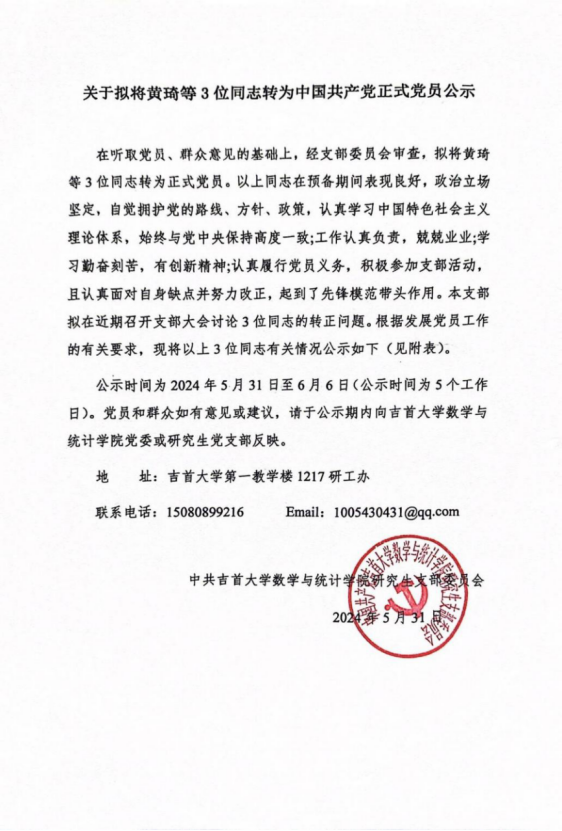 研究生党支部关于拟将黄琦等3位同志转为中国共产党正式党员公示